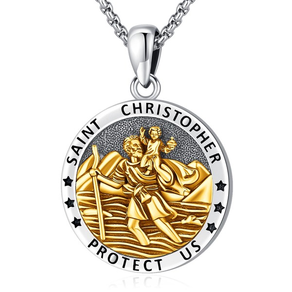 LOOVE St Christopher Necklace for Men Sterling Silver Gold Saint Christopher Medal for Women Patron Saint of Traveler Religious Protection Amulets Jewelry