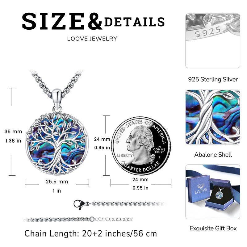 - Size: Tree pendant size is 25.50*35.00 mm(1.00*1.38 in). Chain Length: 20"+2" extender (56 cm). Suitable for women and men