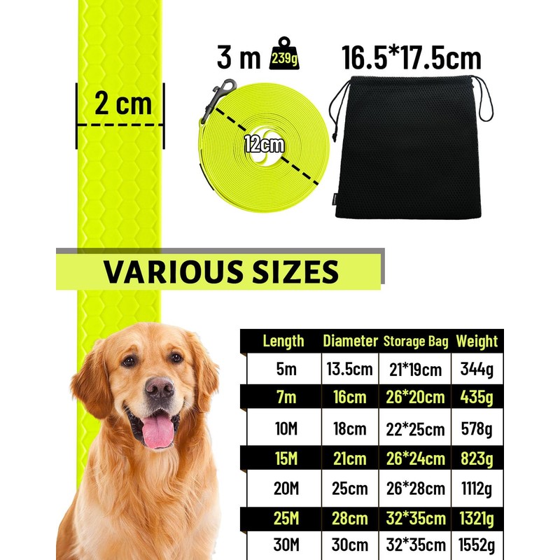 • Easy to clean and store – the exercise lead is easy to clean and can be wiped with water immediately after use to remove surface dirt. In addition, the dog lead comes with a breathable mesh bag for easy storage and carrying