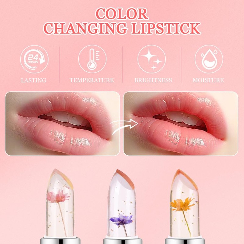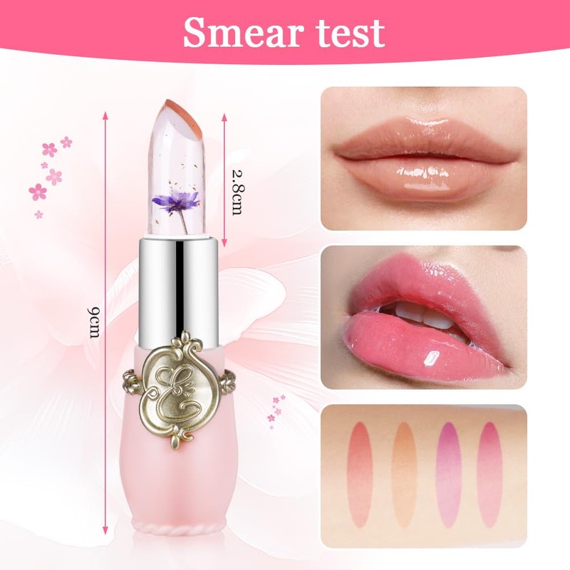 The LOPHE Flower Jelly Lipstick Set brings an innovative twist to your makeup routine with color-changing jelly lipsticks infused with real flowers. Each of the 4 lipsticks in this set delivers a unique, moisturizing formula that transforms into a beautiful, vibrant hue when applied to your lips. The floral infusion not only adds an aesthetic touch but also nourishes your lips with a blend of botanical ingredients. These lipsticks offer long-lasting wear, a smooth finish, and a comfortable feel, making them perfect for all-day use. Whether you’re looking for a subtle tint or a bold pop of color, this set has you covered. Treat yourself to a luxurious and fun lip color experience with the LOPHE Flower Jelly Lipstick Set.