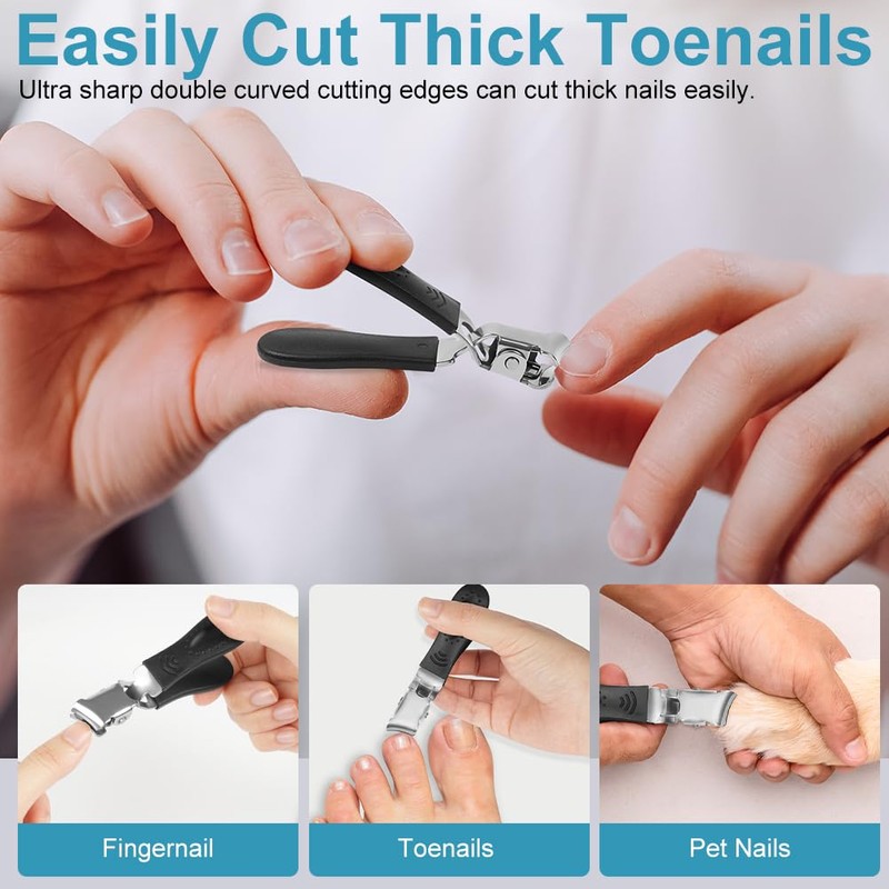 2. The combination of sharp blade and strong leverage allows you to easily cut thick and extra-long nails. The curved design helps remove ingrown toenails and relieve toe pain.