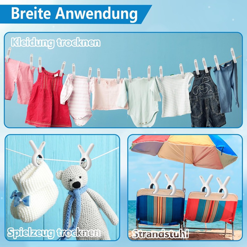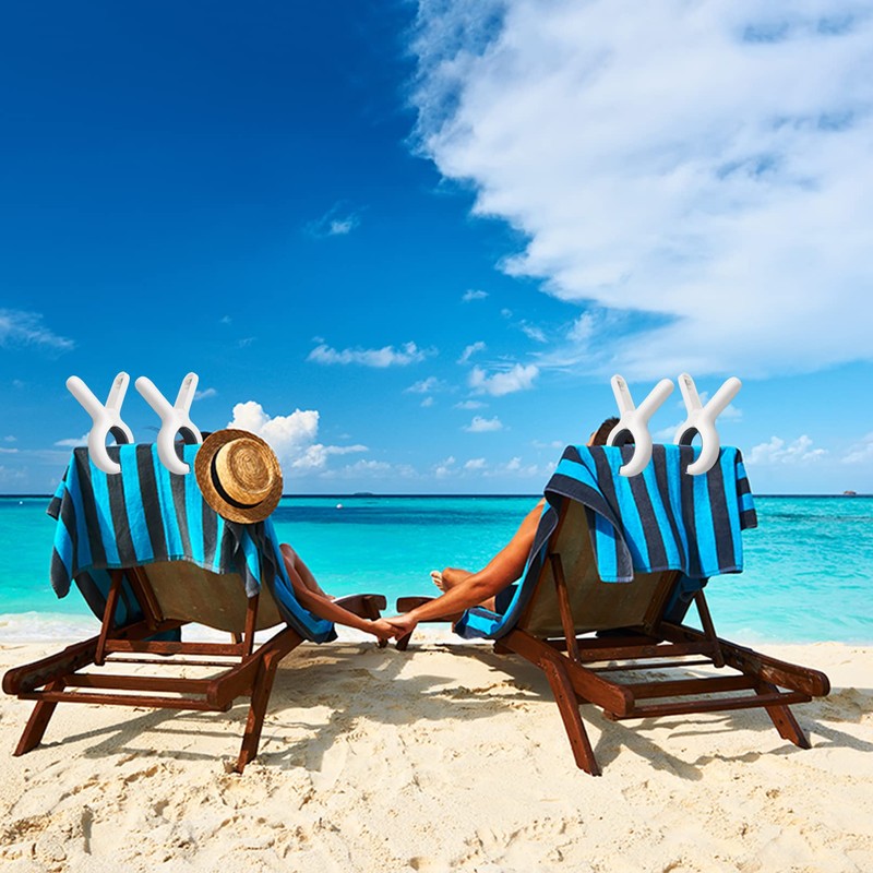 - Multifunctional clip: these beach towel clips are very suitable for attaching towels to sun loungers, deck chairs and pool chairs or for hanging clothes, socks, toys, clothespins, bag clips, photo clips, food clips, etc.