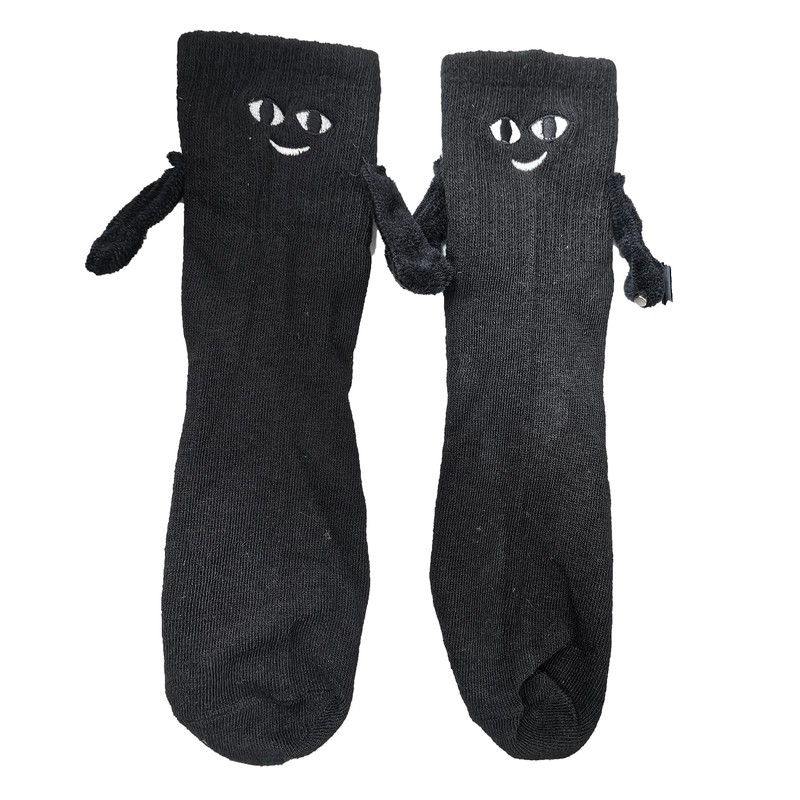 Lopsity Magnetic Holding Hands Socks Mid-Calf Socks Novelty Funny Socks for Men Women (CA/US, Alpha, Large, Regular, Regular, BLACK)