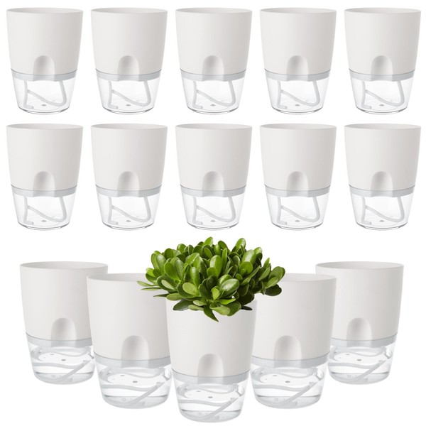 LOPYXBR 15 PCS 4 Inch Self Watering Pots for Indoor Plants Small Self Watering Planter with Self Watering Wick White Clear Plastic African Violet Pots Self Watering Plant Pot for Indoor House Plants