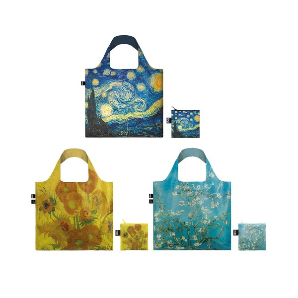 LOQI Museum Famous Artwork Reusable Bags, Set of 3, Van Gogh