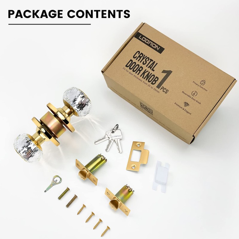 • 【Privacy Function Door Knob】Complete pack features interior crystal door knob with lock and keys, designed with privacy deadlock, used for closet, bedroom, bathroom, garage, wine cellar, where the security is needed.