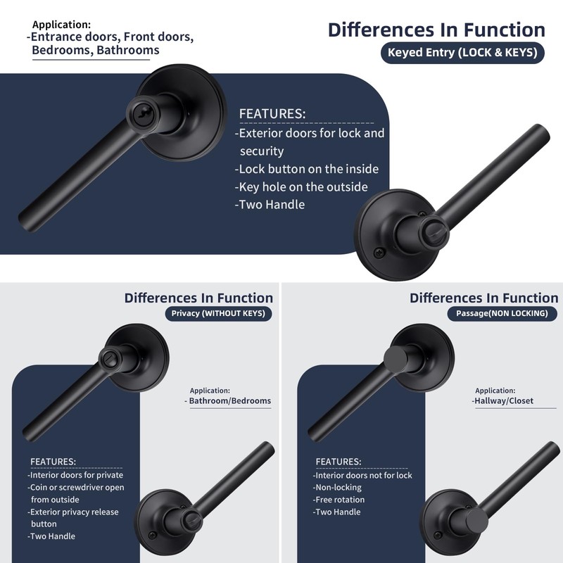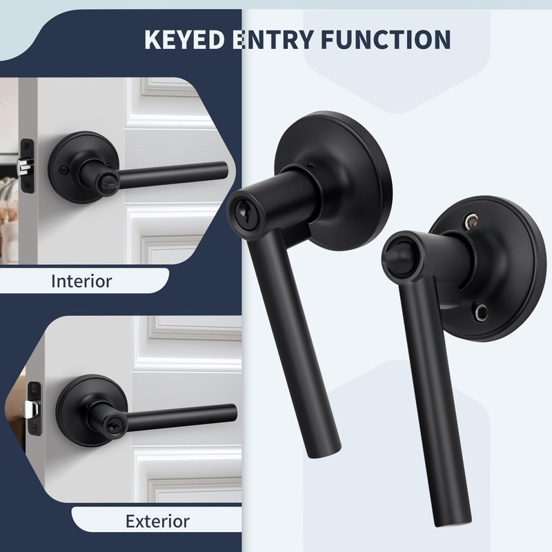 - 【Versatile Usage】The Keyed entry function door lever is designed to meet the needs of various environments, ideal for entrance doors, front doors, and bedrooms where security is required. The door can be opened from the inside using a thumb turn and from the outside with a key.