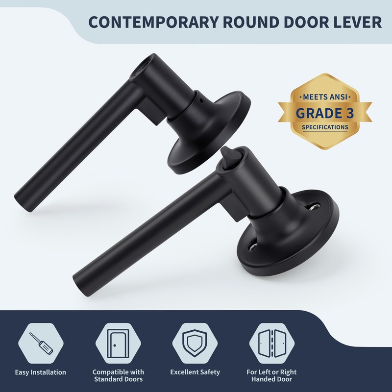 - 【Sturdy Structure】The clean and smooth-lined matte black door handle, made from solid zinc alloy, exceeds ANSI/BHMA Grade 3 certified. Designed to resist daily wear and corrosion, providing lasting durability and stability.