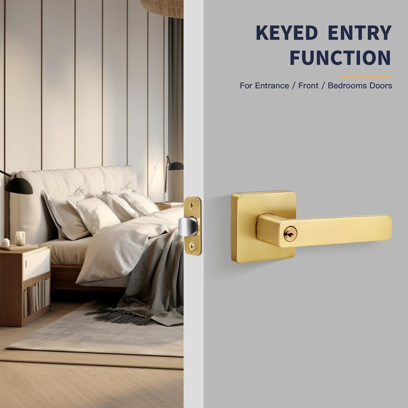 - 【Effortless Install】The brushed brass finish entrance door lever with keys is designed to seamlessly replace the existing door handle in your home. Offers straightforward assembly with no need for specialized tools.