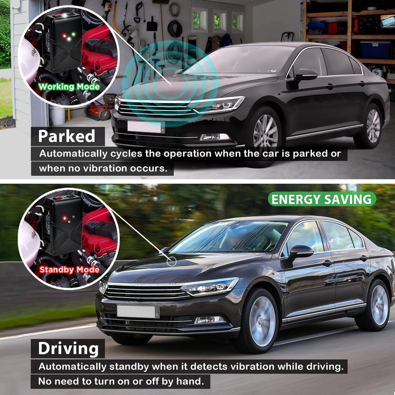 Auto standby to save battery power while driving; Automatically resume work 20 seconds after vibration stops