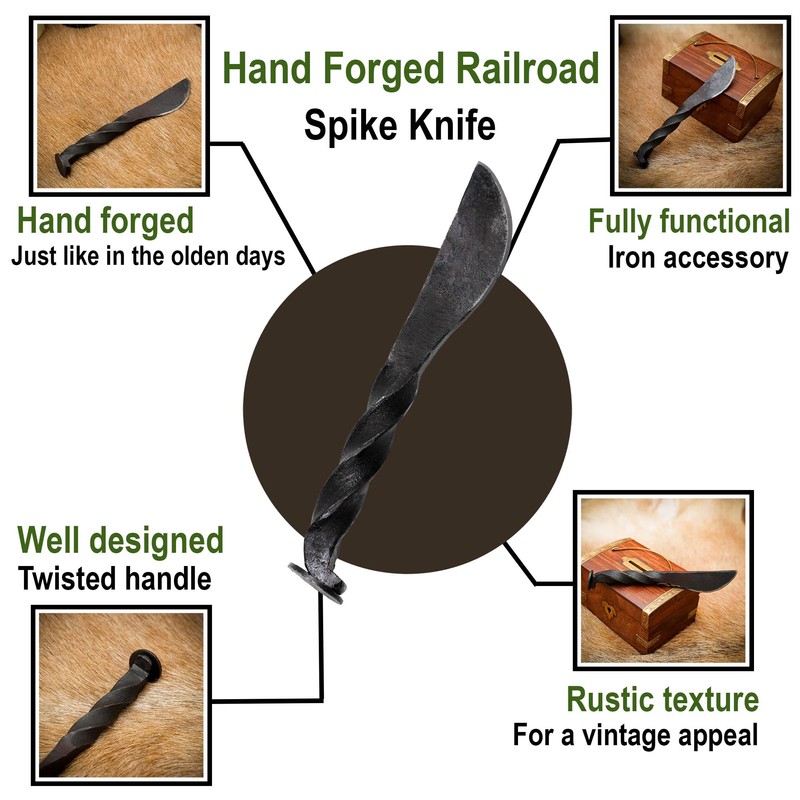 - ✔️ ★ A rustic knife is all you need to make an amazing camping experience or even as a gift for a vintage enthusiast! This railroad spike knife will surely be a perfect choice. Getting its name from the intriguing railroad spike used to tighten the rails of a train track, our railroad spike knife is a functional forged gear that lasts for years to come, event after event ★
