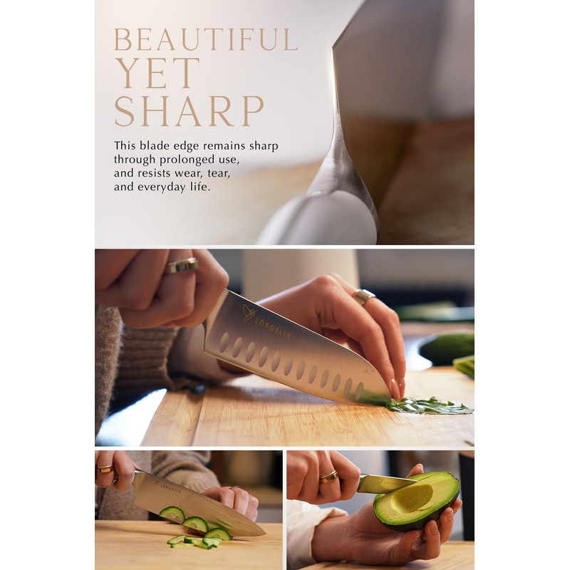 - Stunning Design Meets Comfort & Function: Discover the perfect blend of style and utility with Lordelle's "Right Size" concept. Smaller, ergonomically designed knives and a compact block that enhance both your cooking and kitchen décor, without taking up too much space.