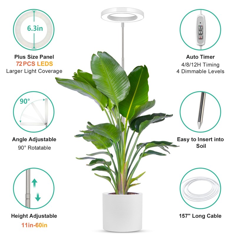 • 13ft Long Cord: The cord is super long, you can use the grow light for your hanging plants or the plants away from the power. MORE FLEXIBLE TO USE! We provide 12 months warranty and 30 days money-back guarantee. If you have any questions about the products, please feel free to contact us.