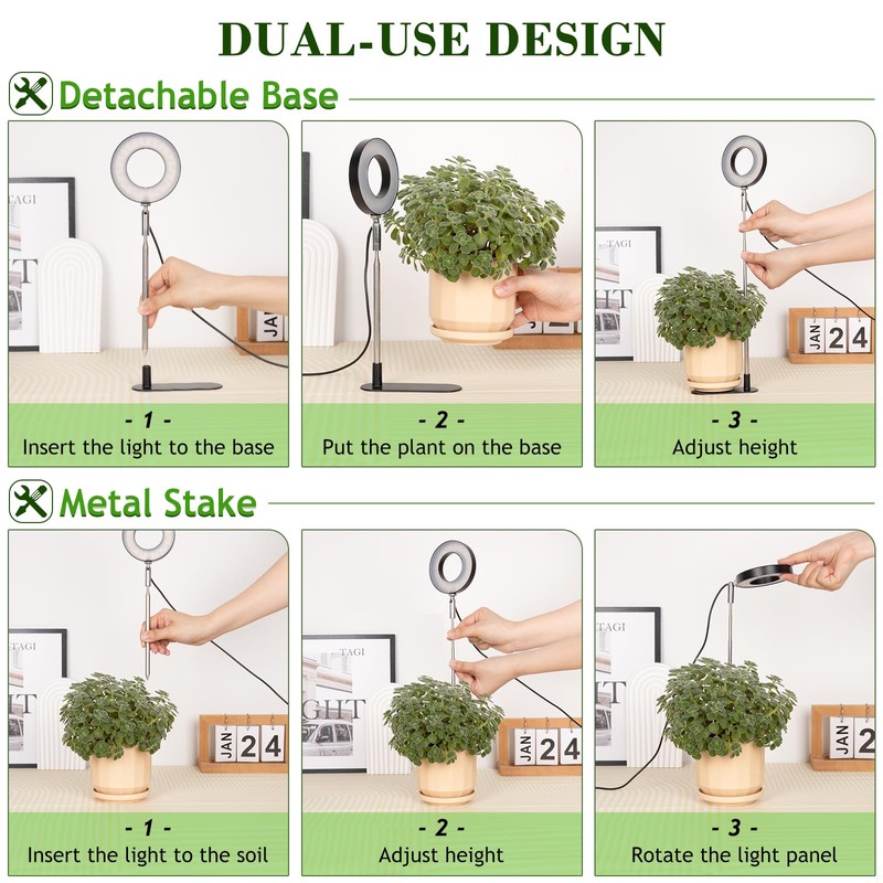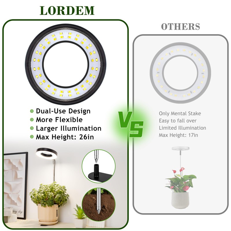 - Note: The product holder needs to be pressed down by the flowerpot to be stable. Two Installation Options : The Lordem desk grow light is designed specifically for indoor plants, which can be inserted in the soil or base for lighting , ensuring easy assembly and use for any plant enthusiast.