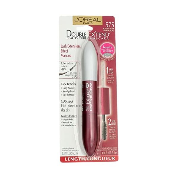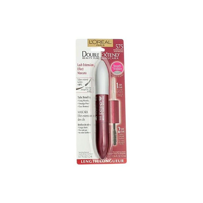Loreal Paris Double Extend Beauty Tubes Blackest Black Mascara -- 3 per case.