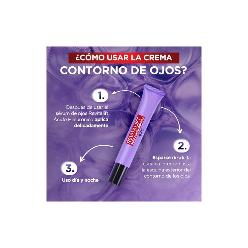 LOreal Paris Revitalift cido Hialurnico Crema de Ojos, Hidrata Intensamente y Rellena Lneas de Expresin, 15 ml.