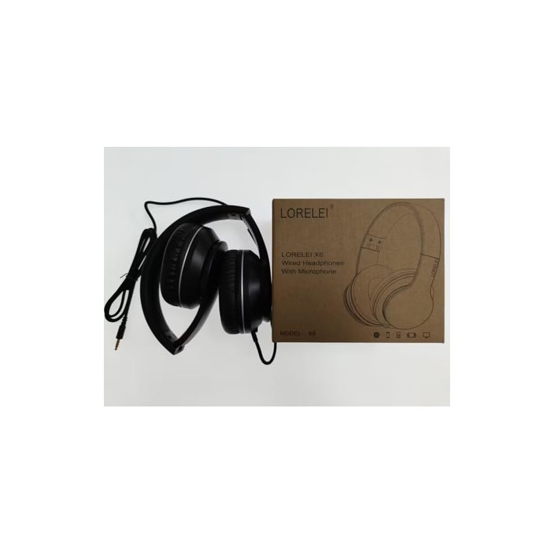 LORELEI LORELEI X6 Over-Ear Headphones with Microphone, Lightweight Foldable & Portable Stereo Bass Headphones with 1.45M No-Tangle, Wired Headphones for Smartphone Tablet MP3 / 4 (Space Black)
