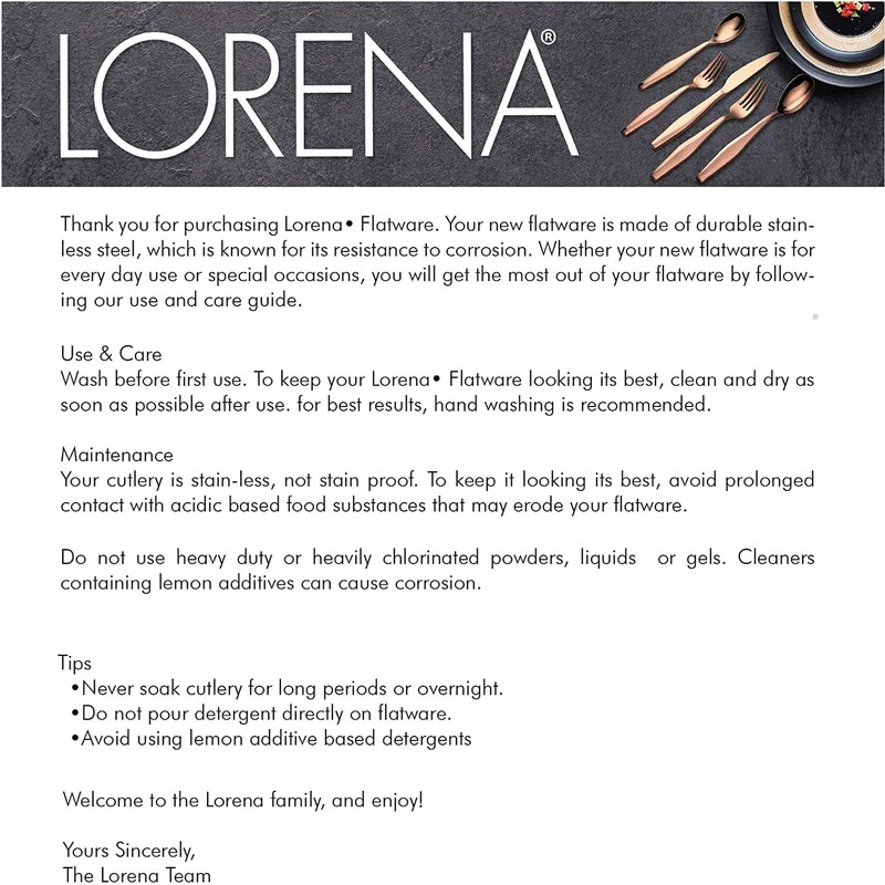 The Lorena 20-Piece Flatware Set combines function, form and fashion to turn average daily meals into exquisite dining experiences. The classic silver color with an exquisite mirror polish finish brings you a contemporary flatware design that will look at home on any table. Whether you are planning a formal dinner party for four or a quiet dinner alone, this fashionable flatware set will add to the experience with its exquisite detailing, thin handles and trendy, modern design. Made from premium stainless steel, each eating utensil is nicely weighted, ergonomically designed, and well-balanced, perfect for everyday use or for special occasions like holidays, dinner parties or birthdays. The silverware set is dishwasher safe to make clean up quick and easy. Plus, the set is heat-resistant and rust-resistant for long-lasting use you can rely on for years to come. The eye-catching cutlery set includes 4 each of Dinner Forks, Salad Forks, Knives, Spoons, and Teaspoons for a complete 20-piece set that provides service for four and affordable luxury.