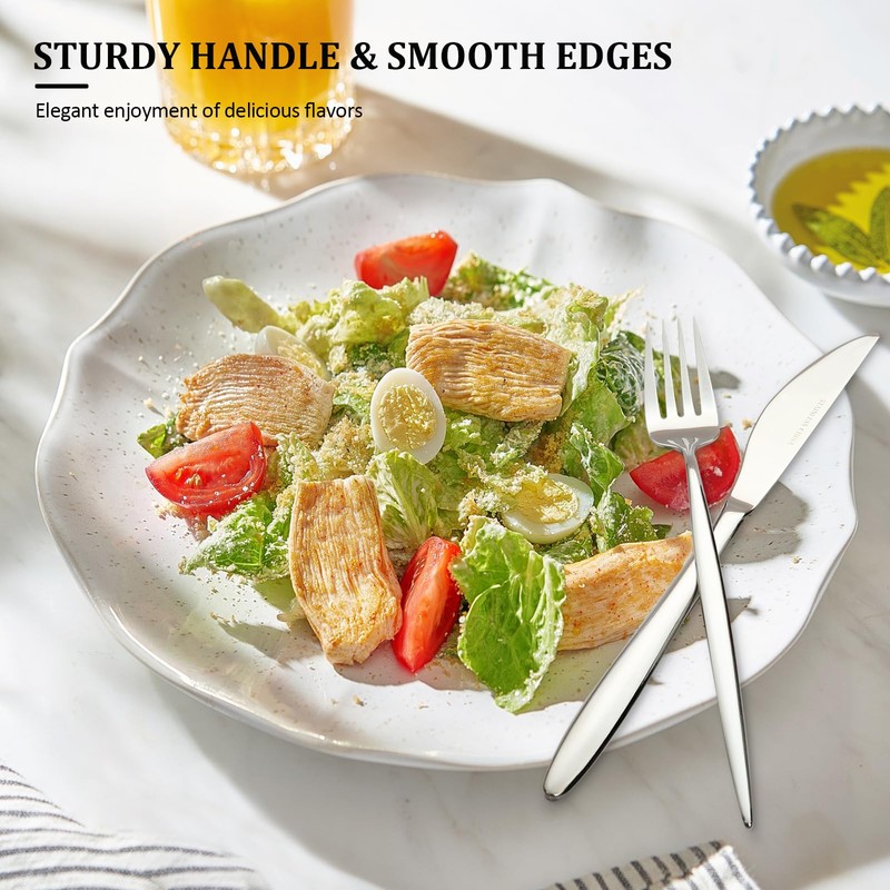 • DURABLE STAINLESS STEEL: Crafted from high-quality stainless steel, each eating utensil is nicely weighted, ergonomically designed, and well-balanced