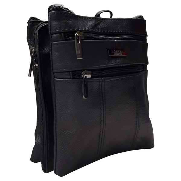 Lorenz New Genuine Soft Leather Ladies Cross Body Shoulder Side Bag Satchel 3781 (Black)