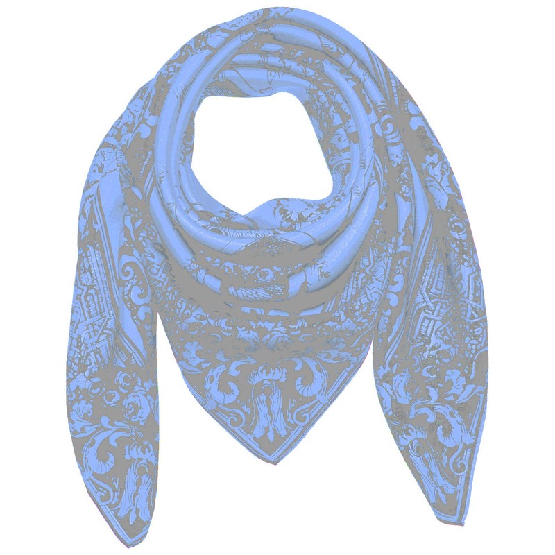 Lorenzo Cana Silk Scarf Elaborately Printed Cloth 100% Silk 90 cm x 90 cm Harmonious Blue Colours Women's Scarf 89171, blue