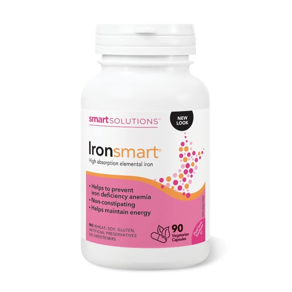 Lorna Vanderhaeghe Smart Solutions Ironsmart Vegetarian Capsules, Helps Prevent Iron Deficiency Anemia, Helps Maintain Energy. High Absorption Elemental Iron, Non-Constipating, Gluten-Free, 90 Count.