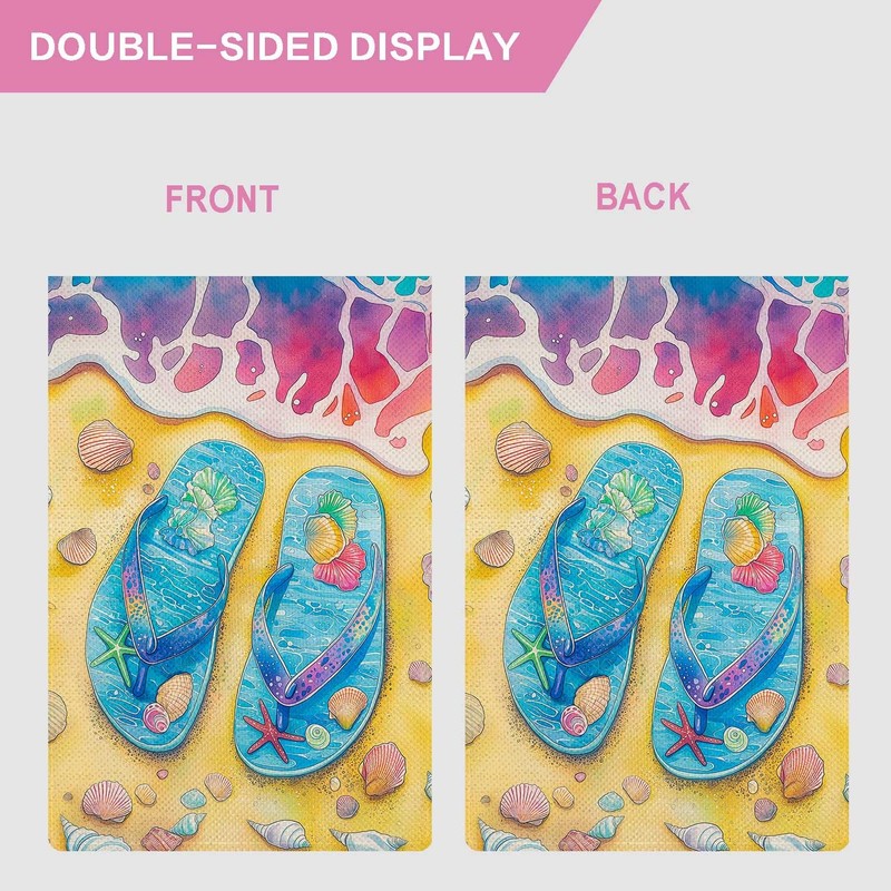 Lorugekyu Summer Flip Flop Garden Flag Beach Shell Small Flag for Outside Burlap Double Sided Farmland Welcome Yard Lawn Winter Decor 12.5x18"