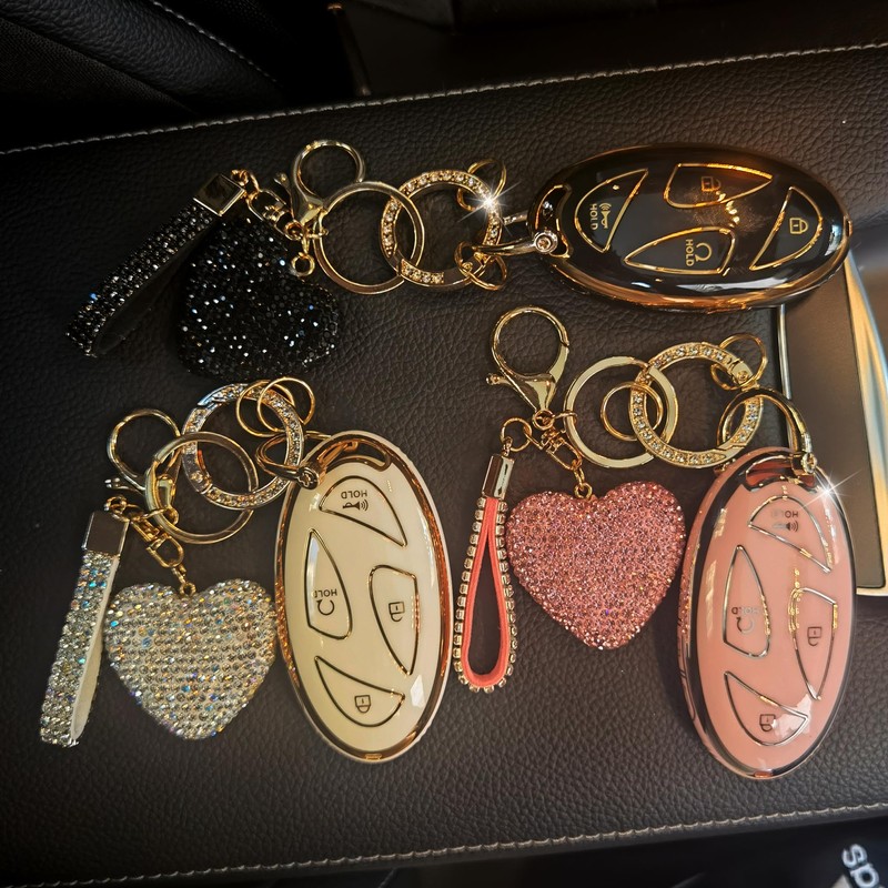 - Key Shell Accessories Includes: Include 1 key fob case for Hyundai 5 Buttons, 1 anti-lost D-buckle, 1 shiny metal clip with 2 rings, 1 heart shaped keychain and 1 screwdriver. Bling diamonds keychain accessory suitable for car keys, work keys, family keys or as Birthday, Thanksgiving, Christmas gifts.