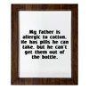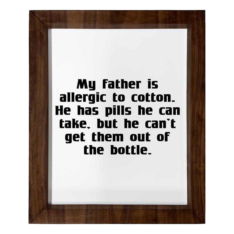 Los Drinkware Hermanos My Father Is Allergic To Cotton. He Has Pills He Can Take, But He Can't Get Them Out Of The Bottle. - Funny Decor Sign Wall Art In Full Print With Wood Frame, 14X17