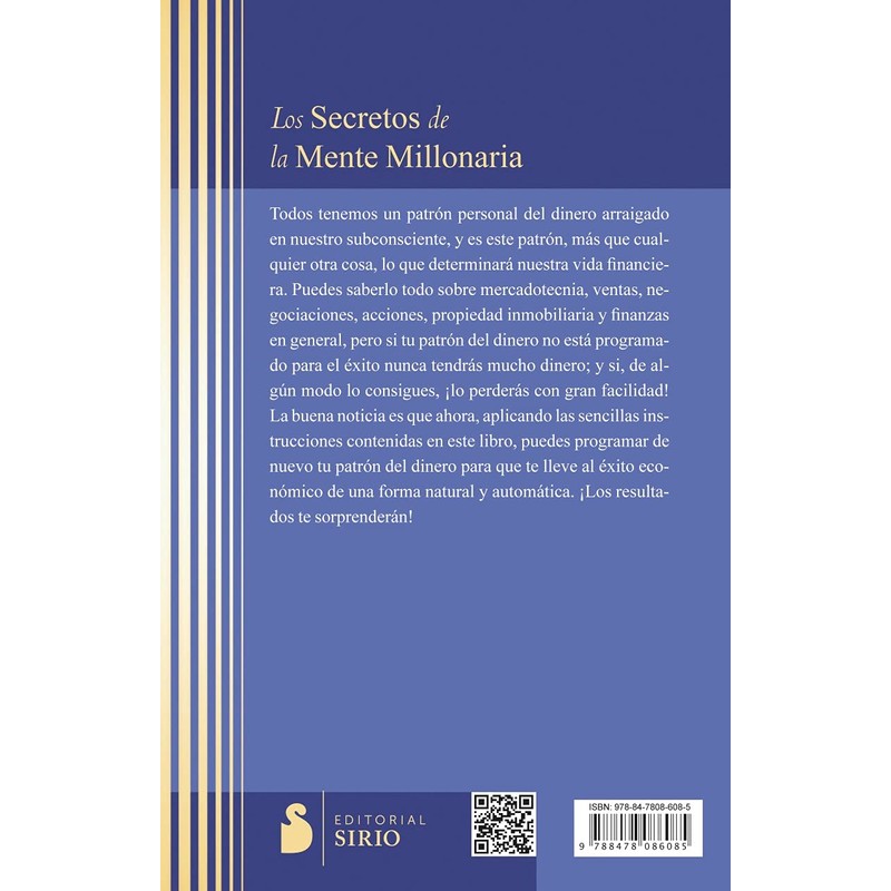Todos tenemos un patrón personal del dinero arraigado en nuestro subconsciente, y es este patrón, más que cualquier otra cosa, lo que determinará nuestra vida financiera. Puedes saberlo todo sobre mercadotecnia, ventas, negociaciones, acciones, propiedad inmobiliaria y finanzas en general, pero si tu patrón del dinero no está programado para el éxito nunca tendrás mucho dinero; y si, de algún modo lo consigues, ¡lo perderás con gran facilidad. la buena noticia es que ahora, aplicando las sencillas instrucciones contenidas en este libro, puedes programar de nuevo tu patrón del dinero para que te lleve al éxito económico de una forma natural y automática.