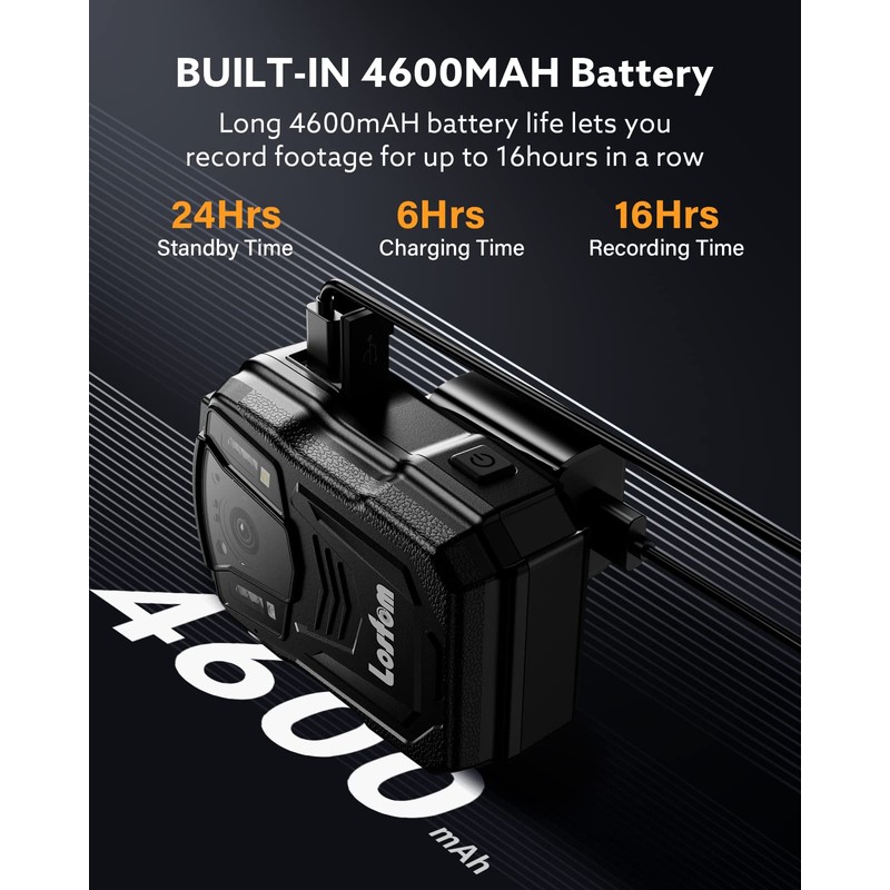 - 【4600mAh Large Battery,Long Battery Life】 It is equipped with 4600mah battery lets you record footage for up to 16 hours in a row, enough to get through multiple shifts without needing to worry about battery life.