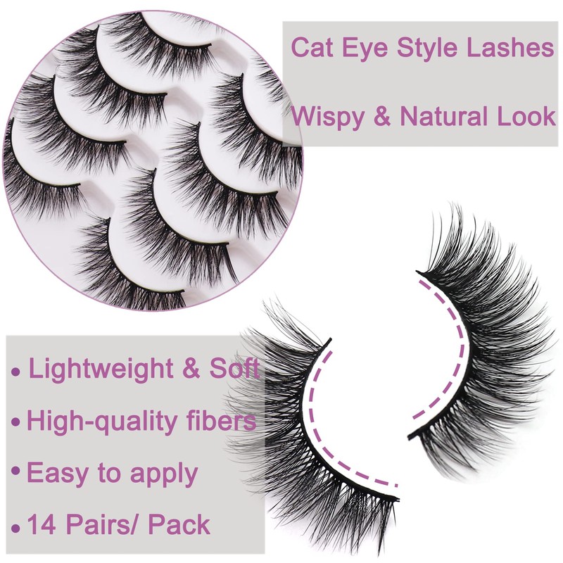 Losha Eyelashes Pack 14 Pairs Wispy Lashes
