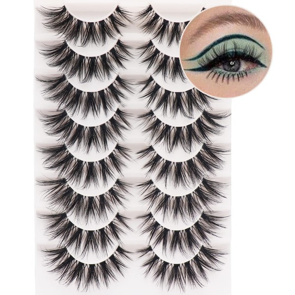 Losha Eyelashes Wispy Lashes Natural Look 8 Pairs Clear Band False Eyelashes Handmade Reusable Fake Eye Lashes Pack (NO.60)