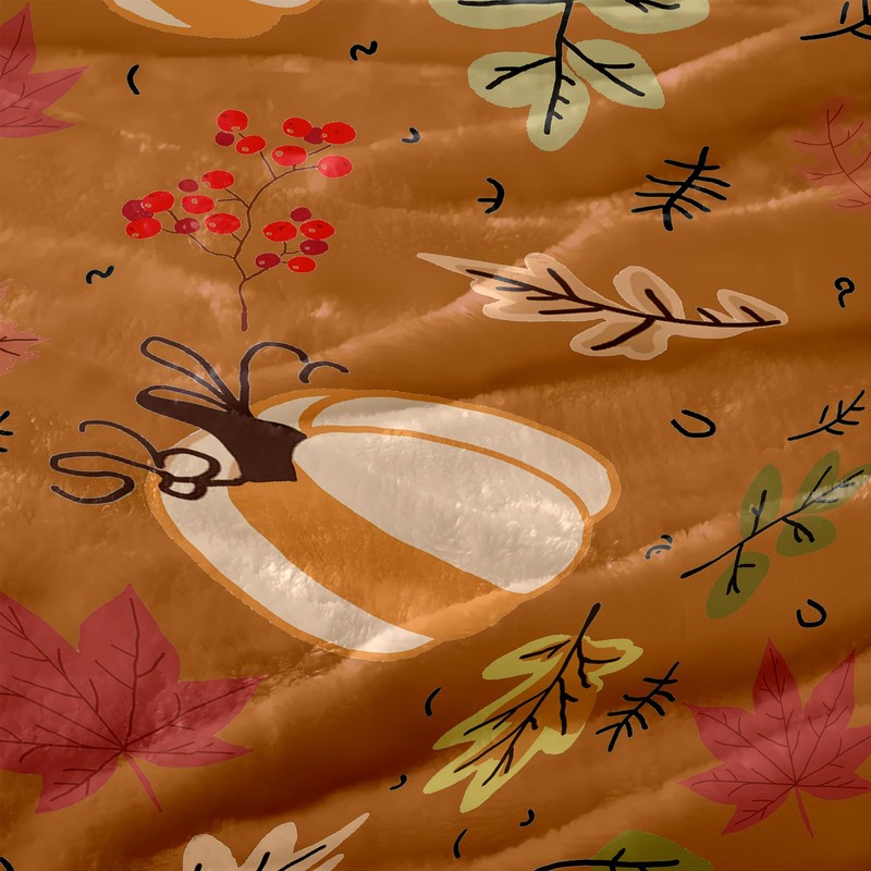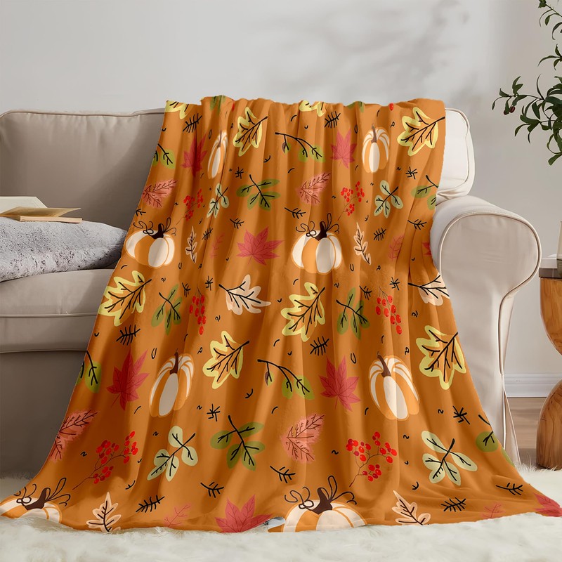 - Autumn-Inspired Design: Featuring pumpkins, maple leaves, oak leaves, and berries, this blanket captures the cozy charm of fall — perfect for seasonal home decor.