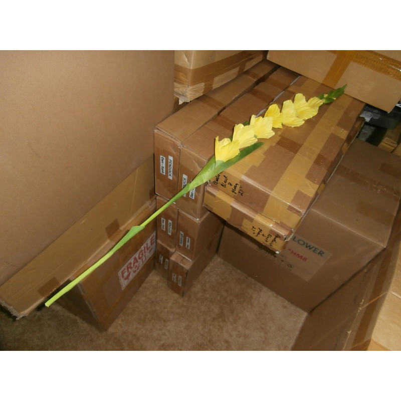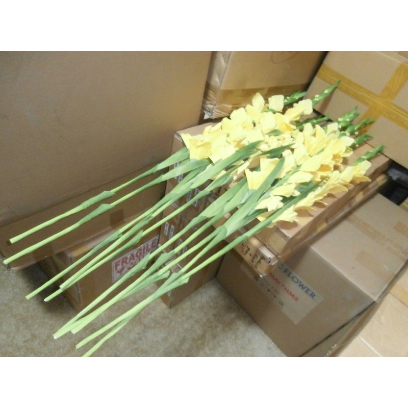 Lot of 10 Sticks Plastic Artificial Yellow Gladiolus Flower (HOA HUE)