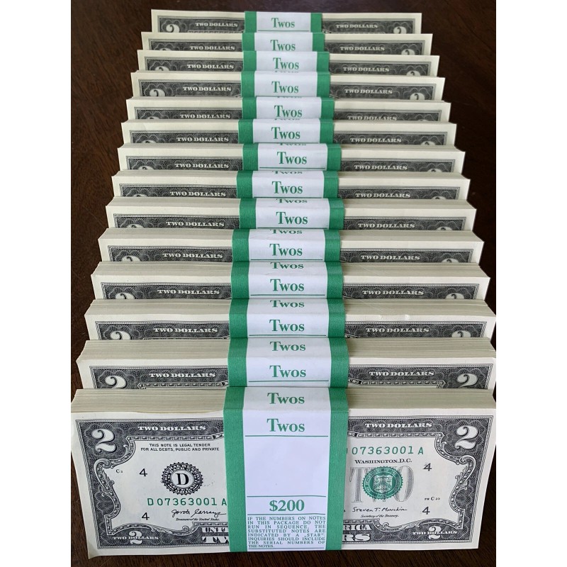 (12) NEW $2 Bills Uncirculated Consecutive Serial Numbers Two Dollar FRN from BEP Pack