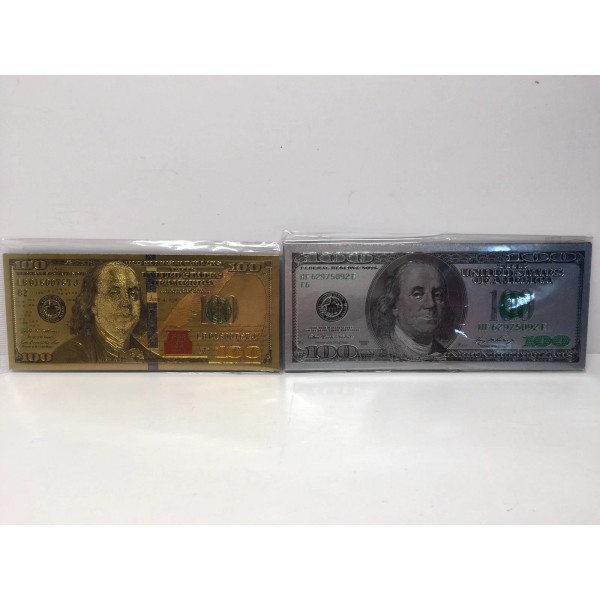 Lot of 2 Gold & Silver $100 Dollar Bill Fridge Magnet One Hundred Dollar