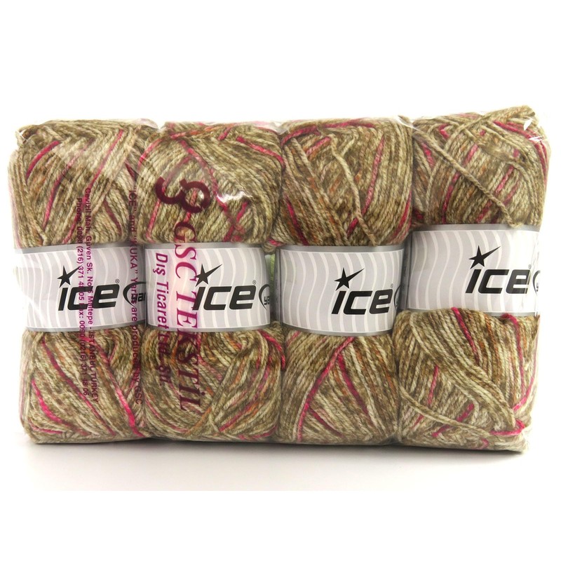 Lot of 4 x 100gr Skeins Ice Yarns Wool VARICOLOR Light (25% Wool) Yarn Fuchsia Orange Brown Shades
