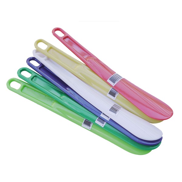 Lot of 6 Plastic Colored Shoe Horns 10 x 1.5" Sturdy 4 mm Thick