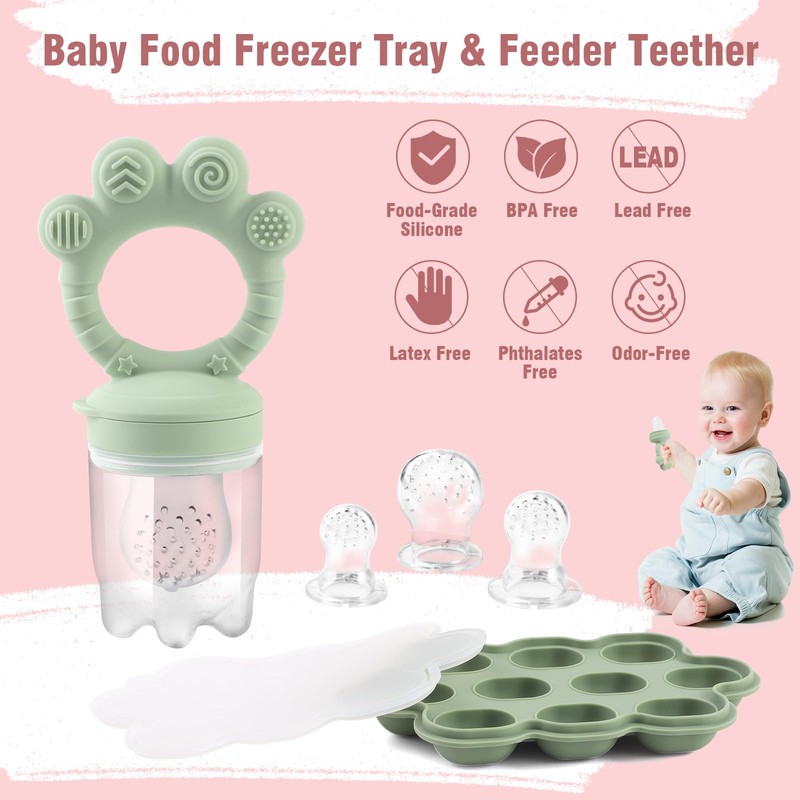 - 4-In-1 and More Convenient Life: The baby food freezer tray and baby fruit food feeder pacifier is perfect for babies during teething. The feeder's handles are made of soft but sturdy silicone that can serve as teething toys to relieve baby's gum pain and and the frozen milk teether popsicle can also help soothe sore gums. It also encourages self-feeding in babies. In addition, it can also double as baby food containers, helping moms quickly prepare baby food, puree, breast milk and more in batch in advance. Then you just put the frozen ones into the baby fruit feeder, and it's all done.