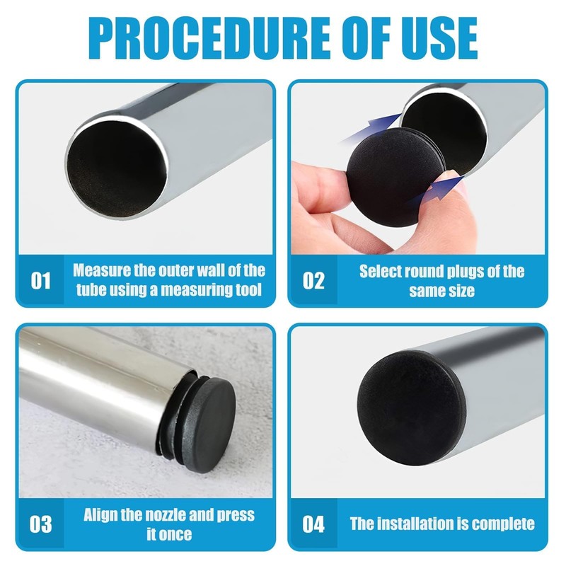 - Optimal protection: these 25 mm diameter pipe plugs are ideal as gliders under the legs of tubular steel chairs whose legs are perpendicular to the floor. They make it easier to move garden furniture while protecting floors and furniture legs from scratches. The dowels are suitable for use on tiles, elastic flooring and carpet.