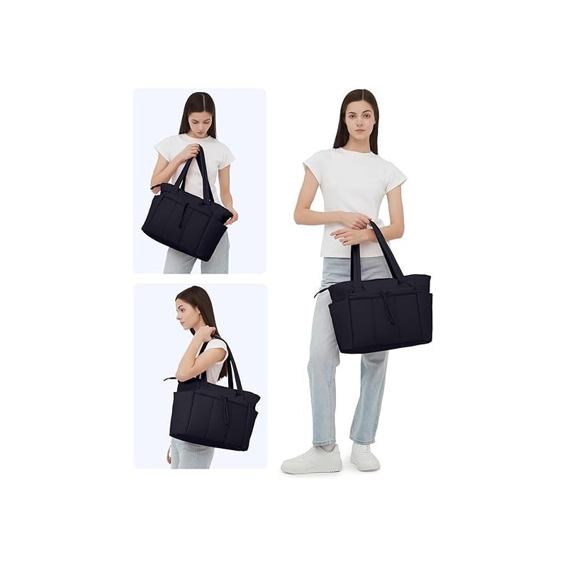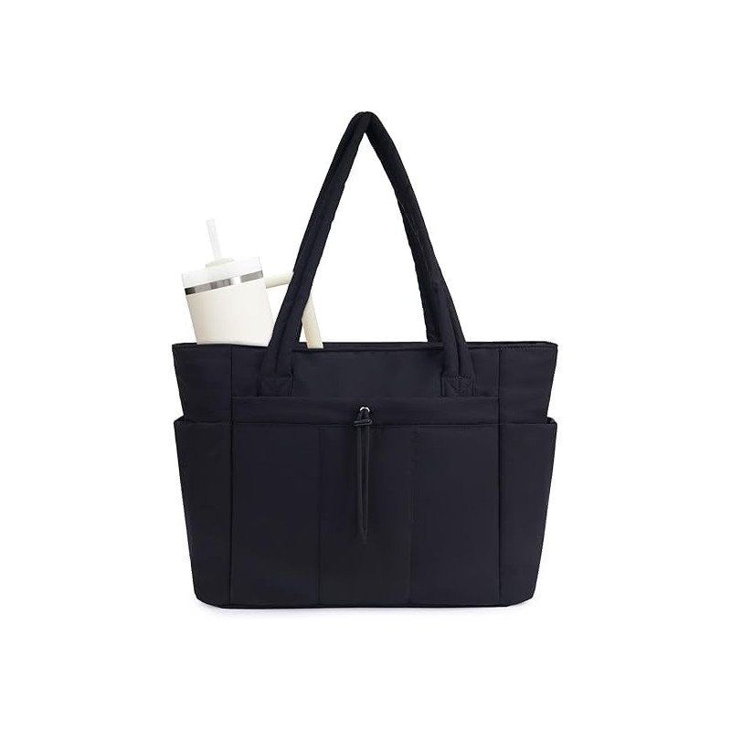LOTEZAVA Women's Puffer Tote Bag, Large Quilted Handbag for Women, 15.6 Inch Lightweight Shopper Bag, Laptop Bag for Work, Clinic, University and Travel, black, L
