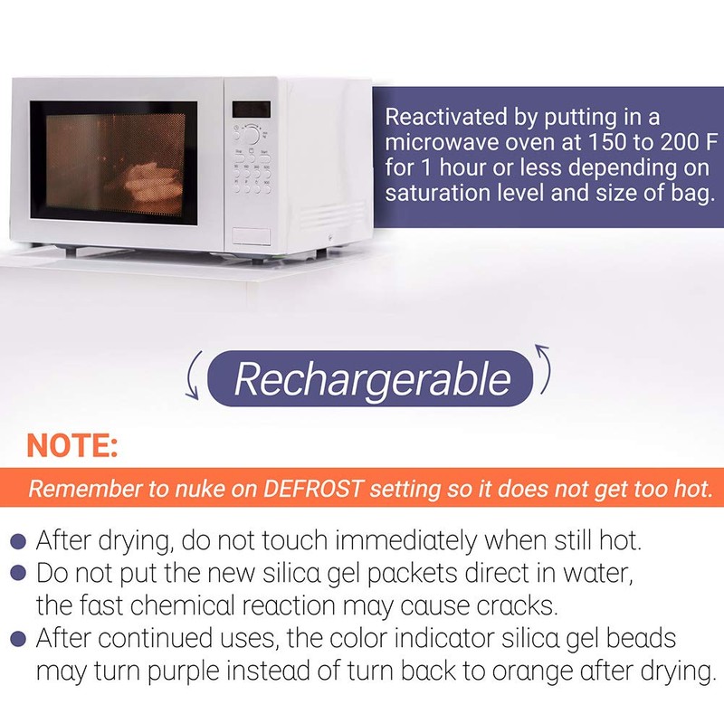 2. No change in size or shape even if the silica beads become saturated with moisture. The beads will continue to feel and look dry.