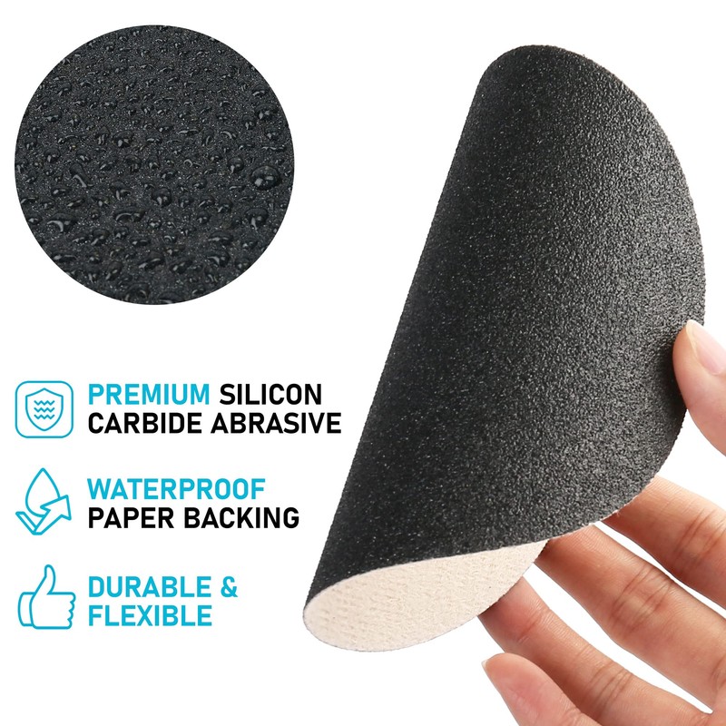 Each disc is durably resin bonded onto a waterproof paper to make sure the paper backing is flexible and soft. Provides flexibility and tear-resistance during use.