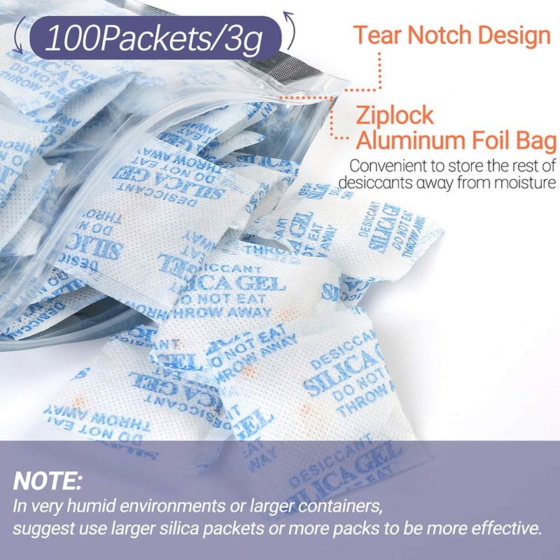 - Safe and non-toxic, moisture absorber: pure silica gel beads without cobalt chloride, packed in Tyvek bags, environmentally friendly and safe to use.