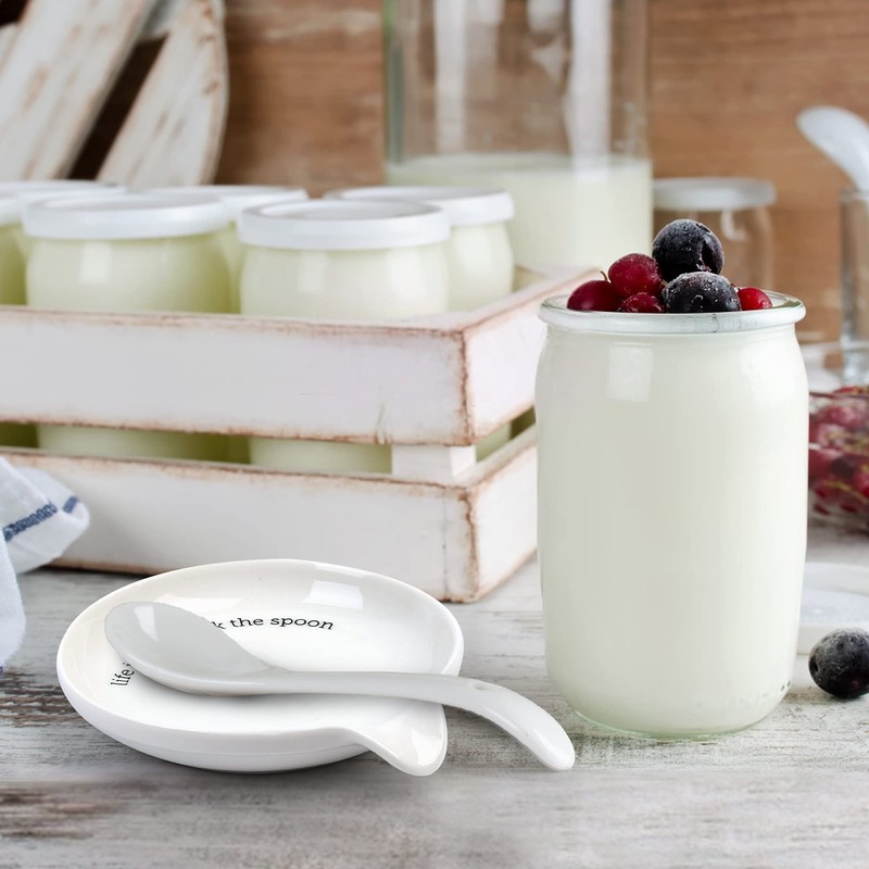 - Diseño elegante y elegante: nuestros reposadores de cucharones blancos tienen un aspecto clásico con una inscripción de texto limpio; práctico de usar y gran pieza de decoración para encimeras de cocina, estufas, mesas de comedor, barras de café, estación de café, granja, mesa