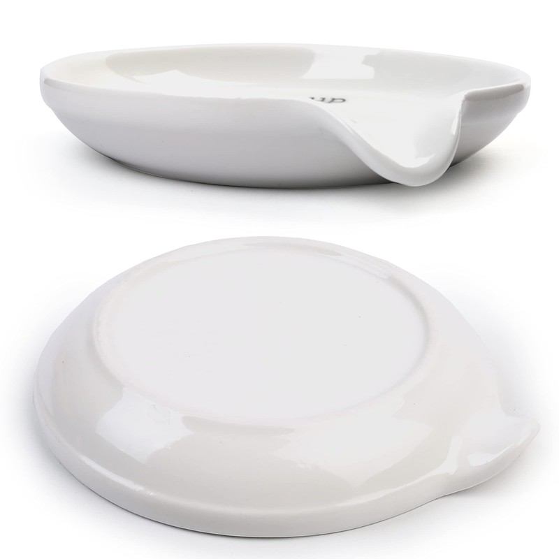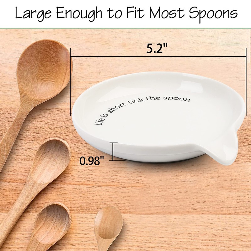 - Diseño elegante y elegante: nuestros reposadores de cucharones blancos tienen un aspecto clásico con una inscripción de texto limpio; práctico de usar y gran pieza de decoración para encimeras de cocina, estufas, mesas de comedor, barras de café, estación de café, granja, mesa