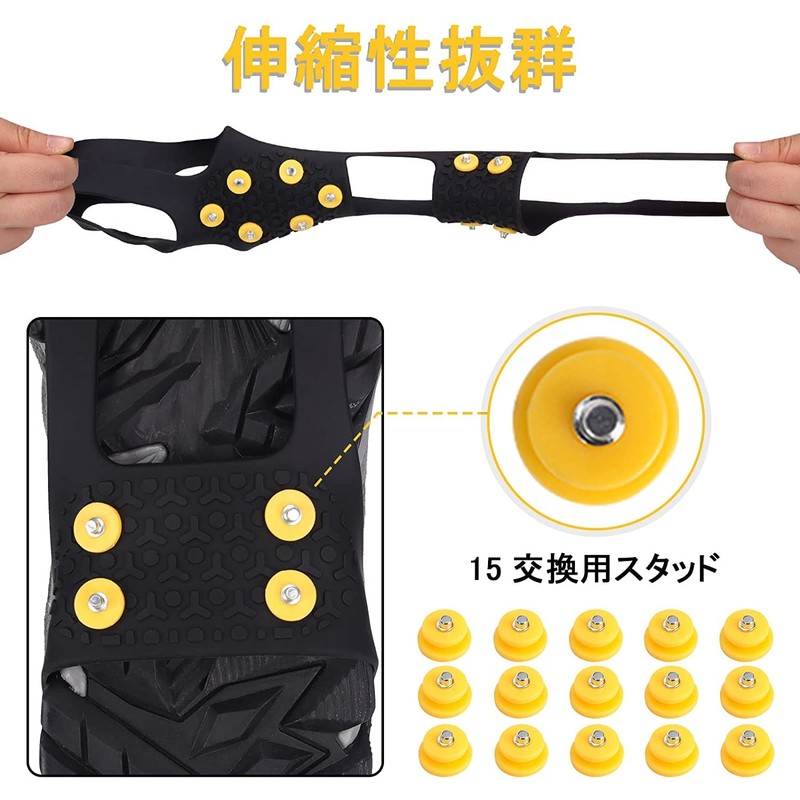 LOTHID Crampons Snow Ice Spikes for Soles, Anti-Slip, Snow Road, 15 Pins, Snow Mountains, Snow Roads, Freezing, Ice, Fall Prevention, Rubber Boots, Sneakers, Shoes, Portable, Unisex, (M)