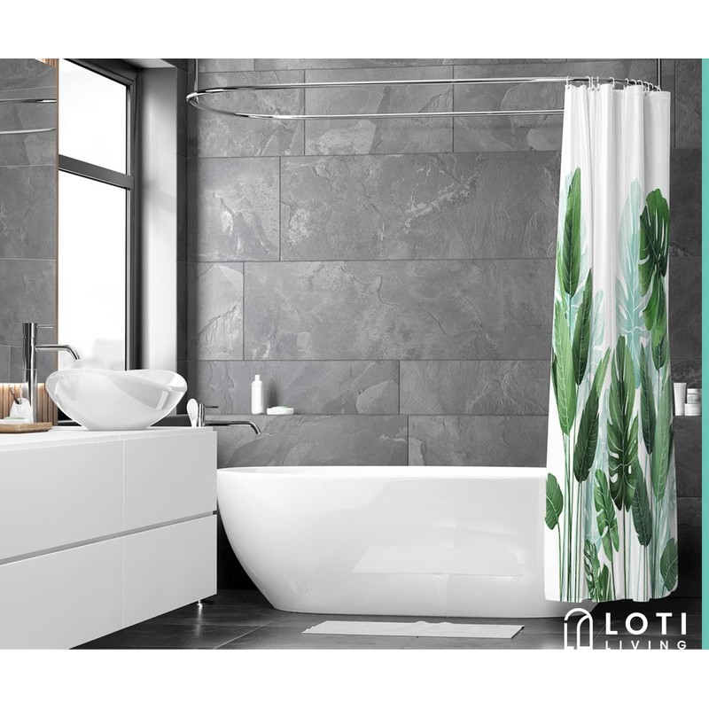 Loti Living Anti-Mould Shower Curtain 180 x 200 cm - Strelitzia Polyester - Includes Rings - Shower Curtains - Shower Curtain Anti Mould - Shower Curtain Bath - Shower Curtain Plants