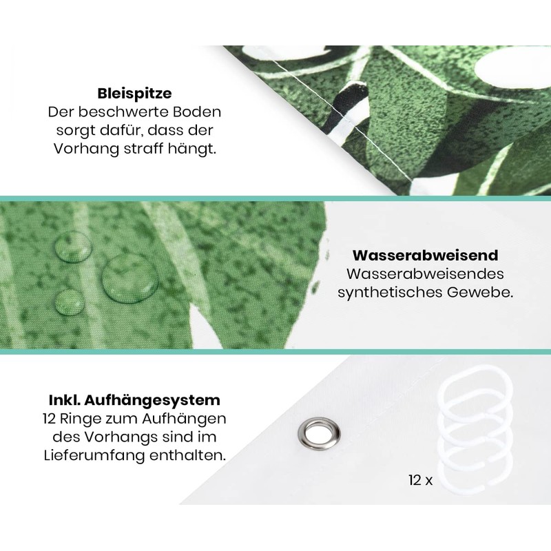 - Good service: water-repellent and moisture-resistant shower curtain 180 x 200 cm. Stays fresh and suitable for humid environments. Functional and fashionable.